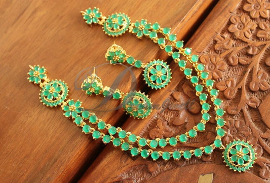 Gold Tone Emerald Double layer Necklace Set DJ24655