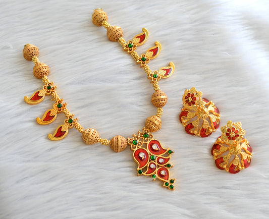 Matte Finish Meenakari Red Mango Kerala style Necklace Set-dj09448