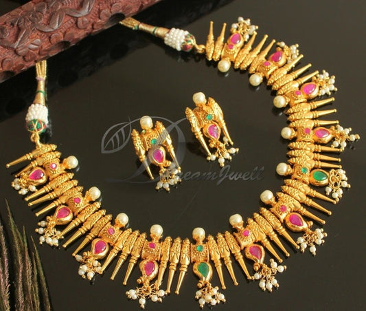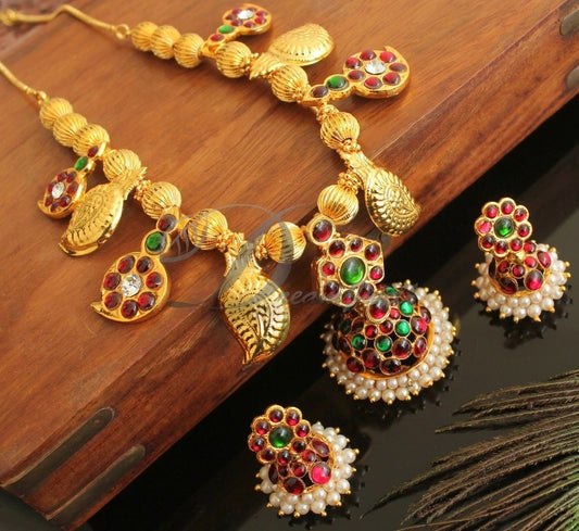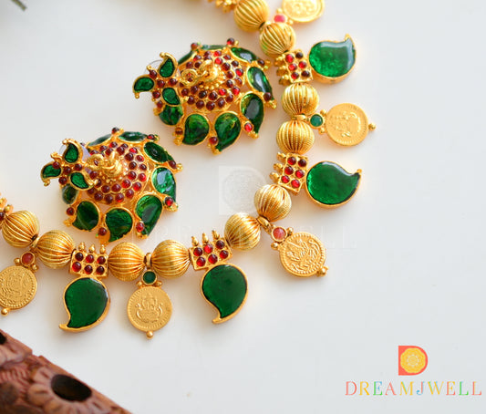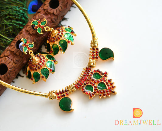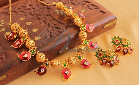 Gold Tone Ruby-green Kerala style Mango mulla mottu Necklace Set-dj07329