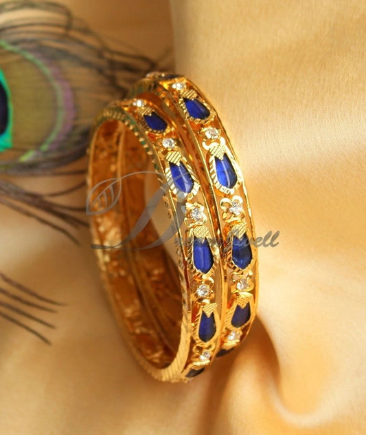 Gold Tone Blue Palakka Bangles(2.6) DJ23504