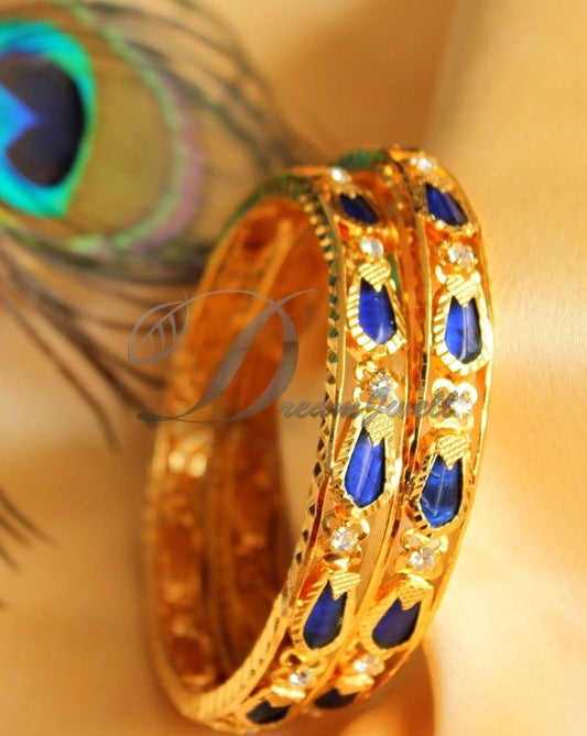 Gold tone Blue Palakka Bangles(2.4) DJ23503