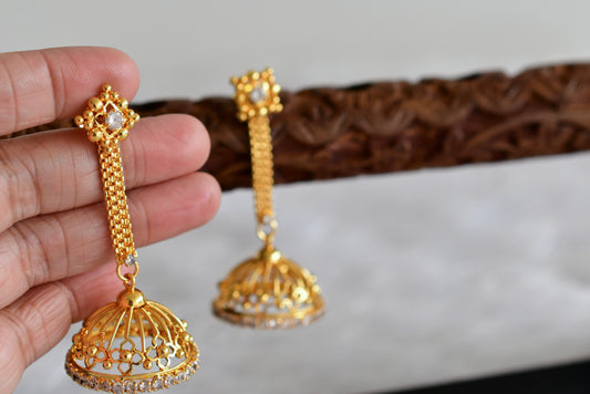 Gold Tone Kerala style white flower long jhumkka dj-51798