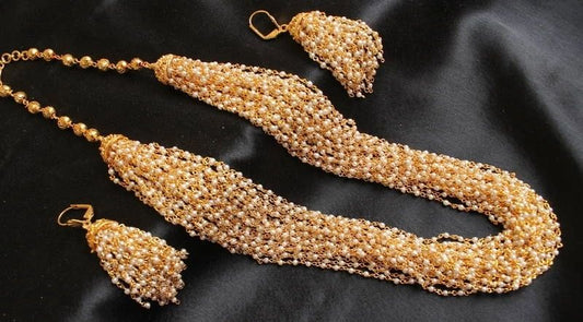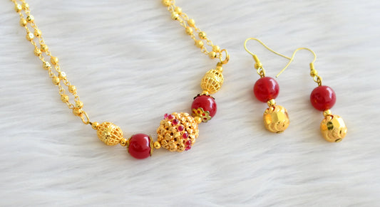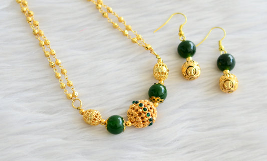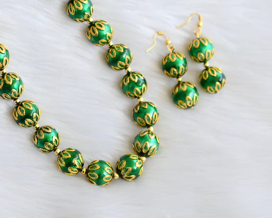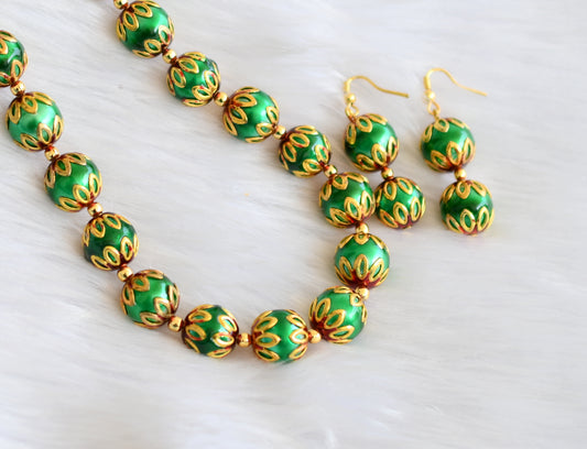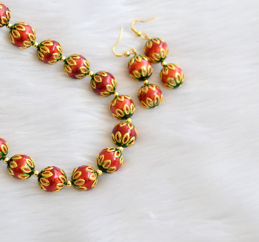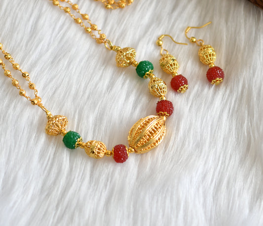 Gold tone handmade maroon-green balls necklace set dj-02572