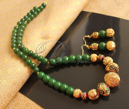 Gold tone Meenakari Green Beaded Necklace Set DJ18361