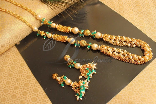 Gold tone Green Pearl Mala Necklace Set DJ18394