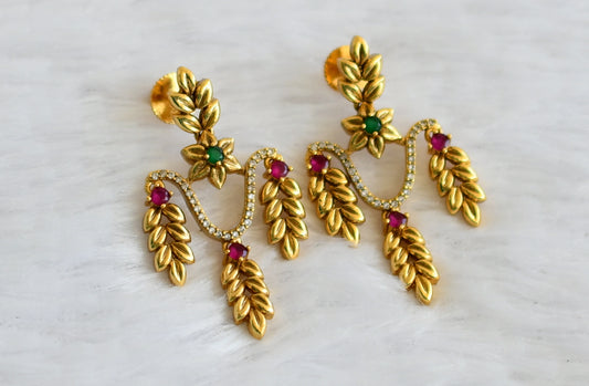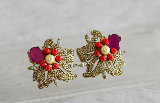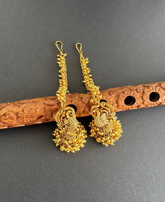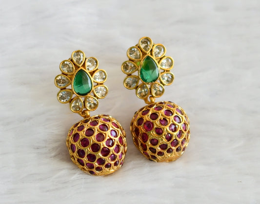 Matte finish ruby Swan gold cluster jhumkka with ear side chain dj-51466