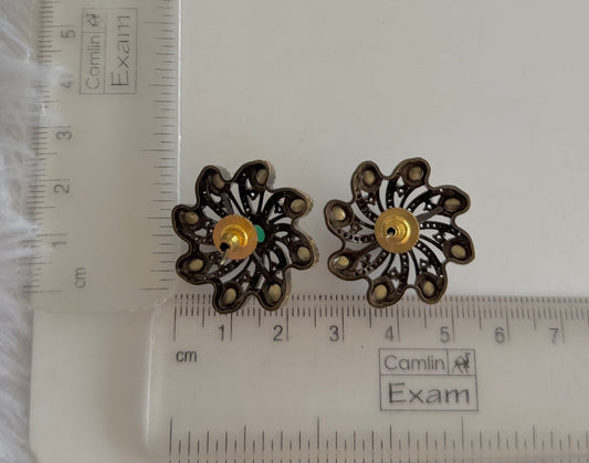 Antique finish cz green victorian flower stud/earrings dj-51471