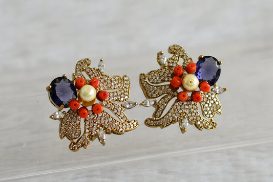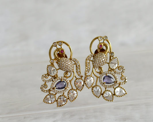 Matte finish cz white-purple stone peacock earrings dj-49024