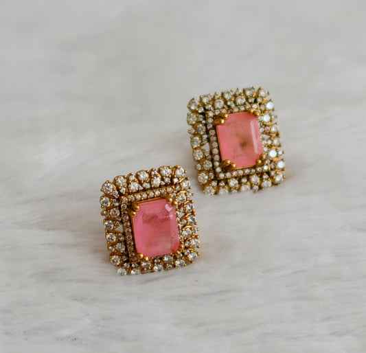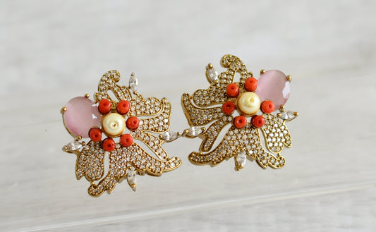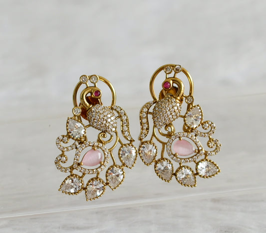 Matte finish cz white-baby pink stone peacock earrings dj-49025