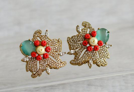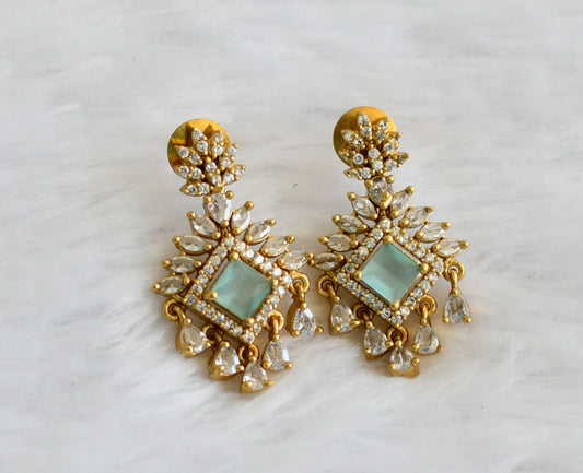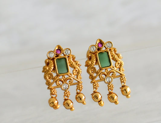 Matte finish kemp-green-white block stone peacock earrings dj-49173