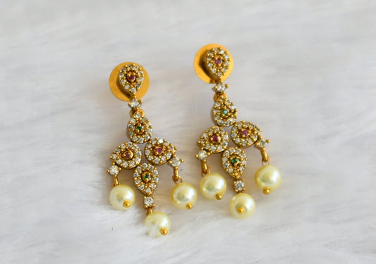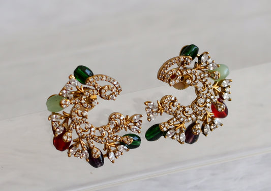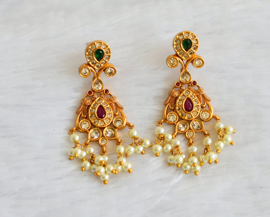 Matte finish cz ruby-green pearl peacock earrings dj-49850
