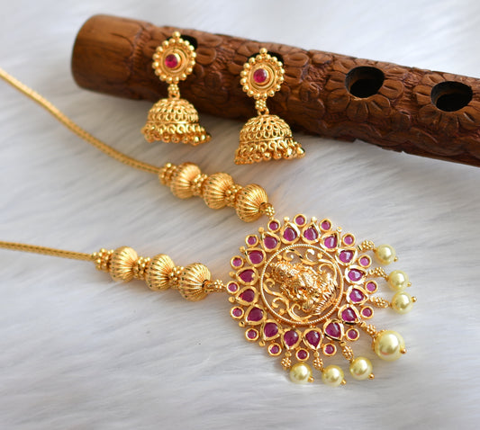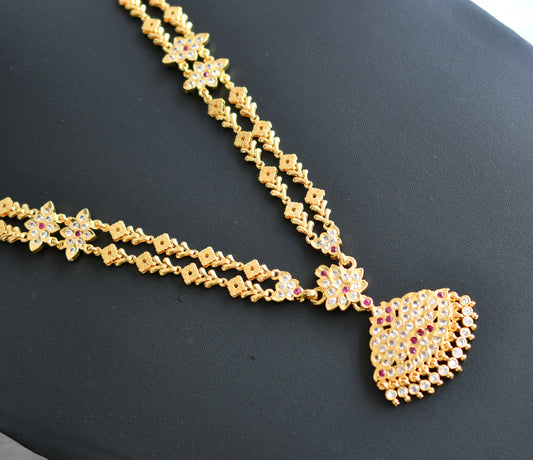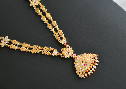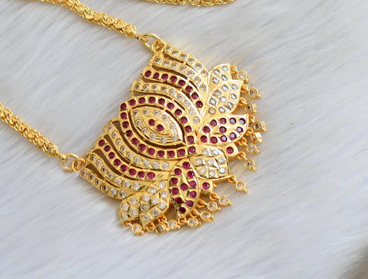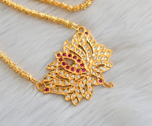 Gold tone ruby-white Lotus South Indian pendant with chain dj-40898
