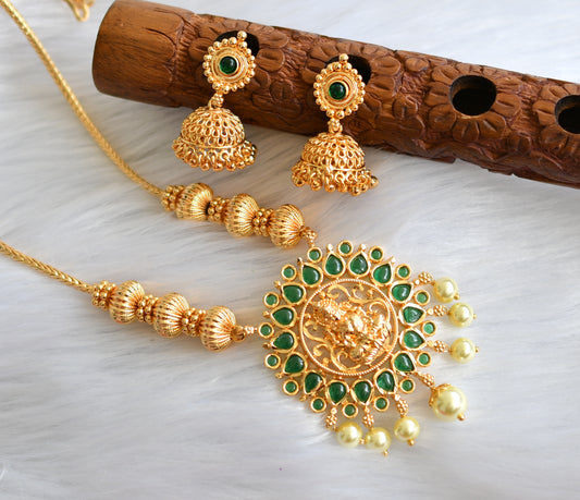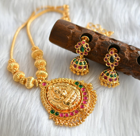 Gold tone pink-green Lakshmi necklace set dj-39147