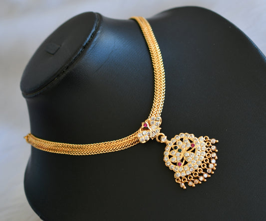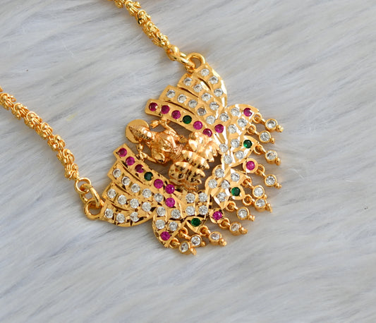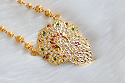 Gold tone ruby-white-green stone peacock pendant south Indian style short haar dj-41656