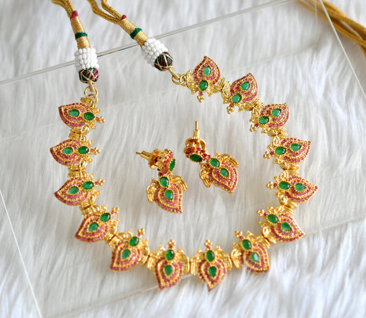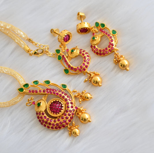 Gold tone multilayer ruby-emerald peacock bali mugappu haar set dj-02004