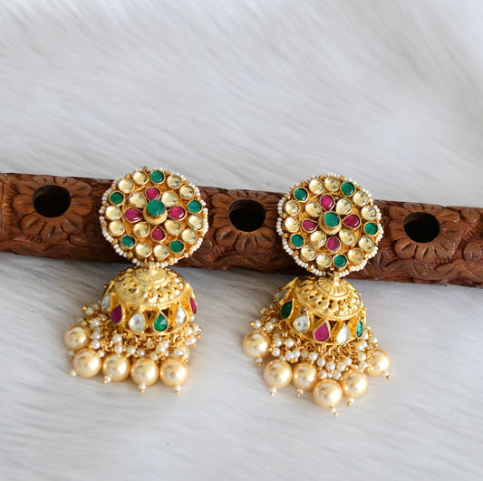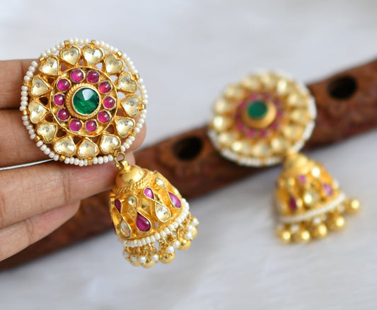 Gold tone precious kemp pearl huge heavy jhumkka DJ-48771