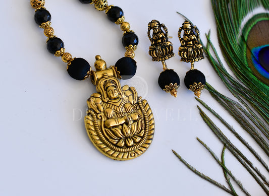 Antique gold tone Multi Color Silk Thread Ganesha Necklace Set DJ22520