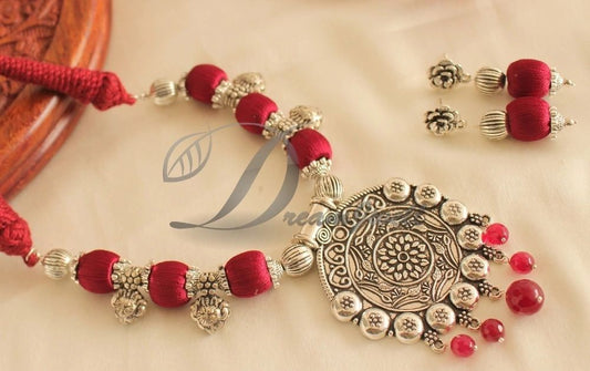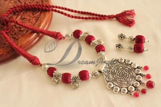 Beautiful Pink Silk Thread Designer Kante Necklace Set DJ23516