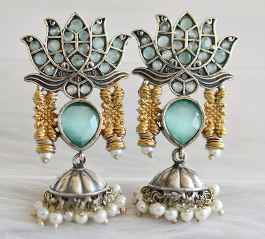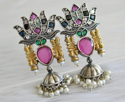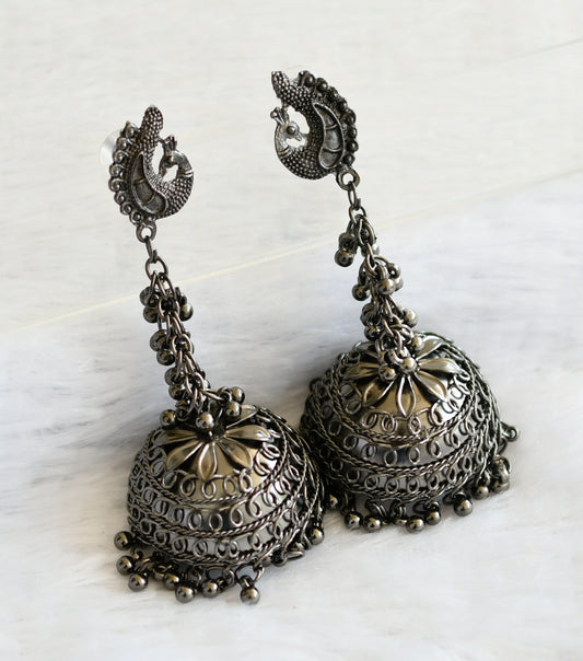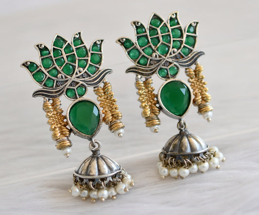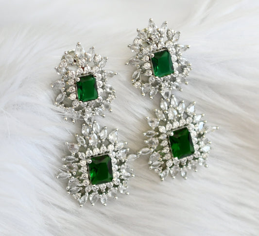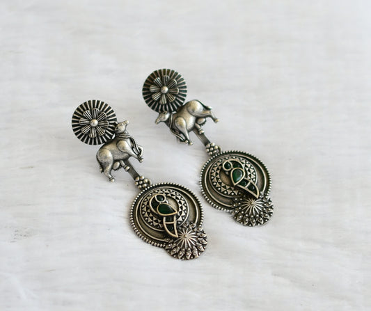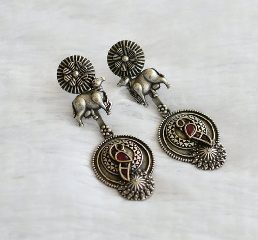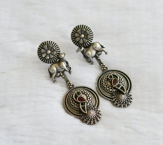 silver tone ruby-green peacock-cow long earrings dj-46420