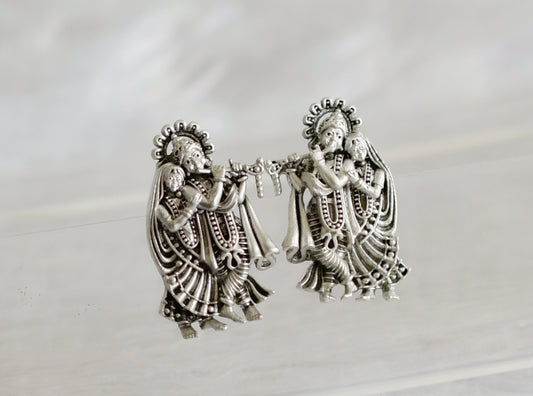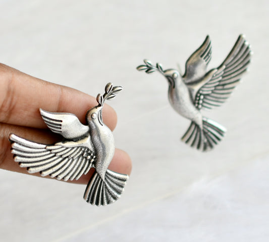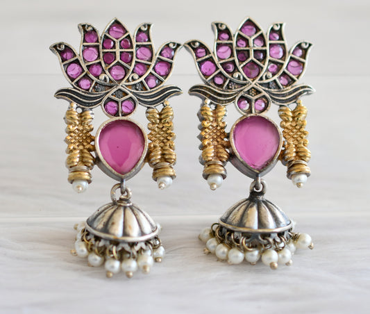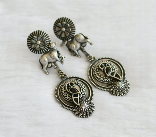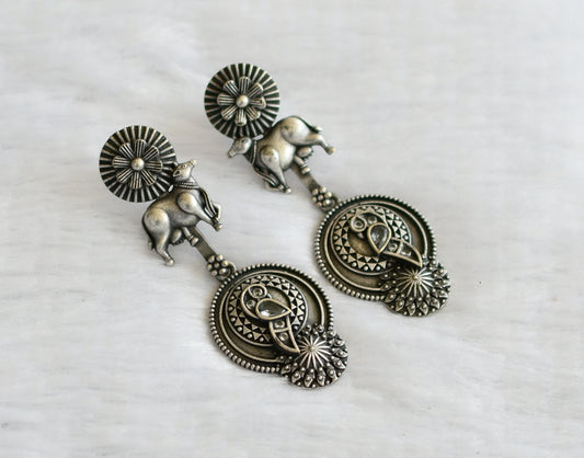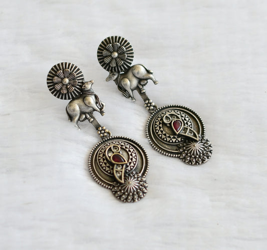 Silver tone ruby-white peacock-cow long earrings dj-46422