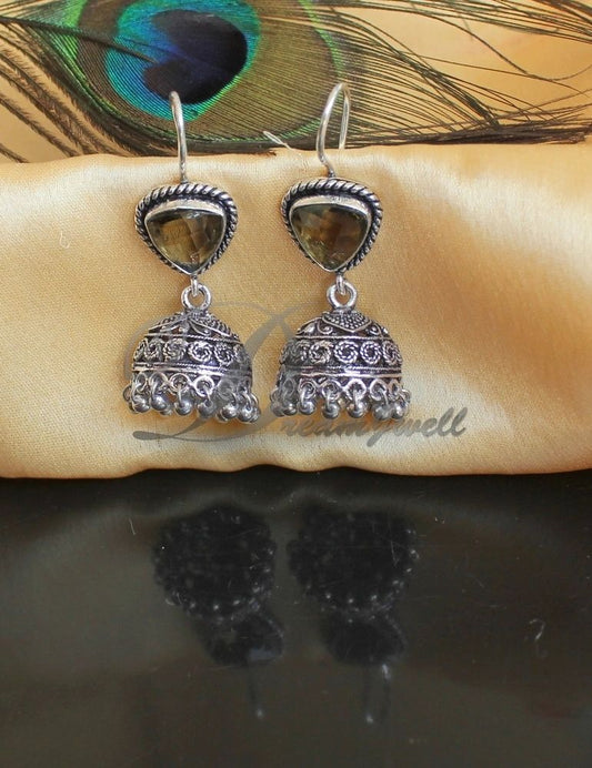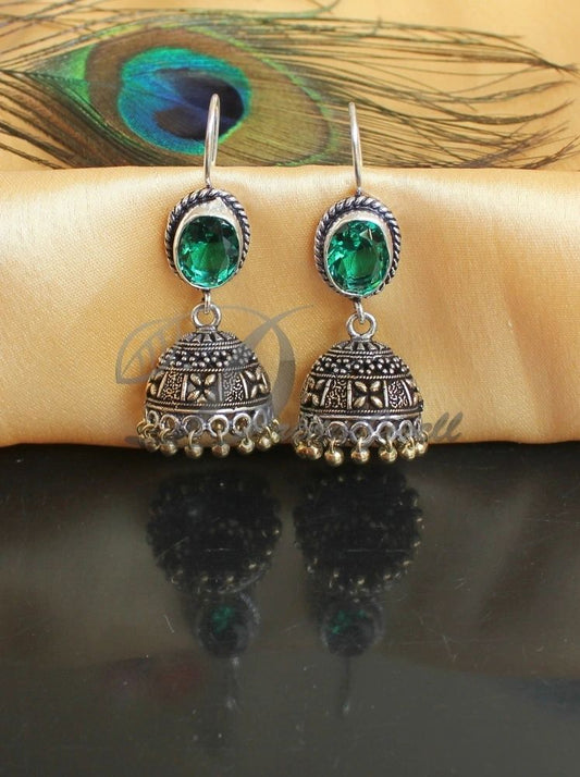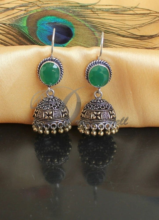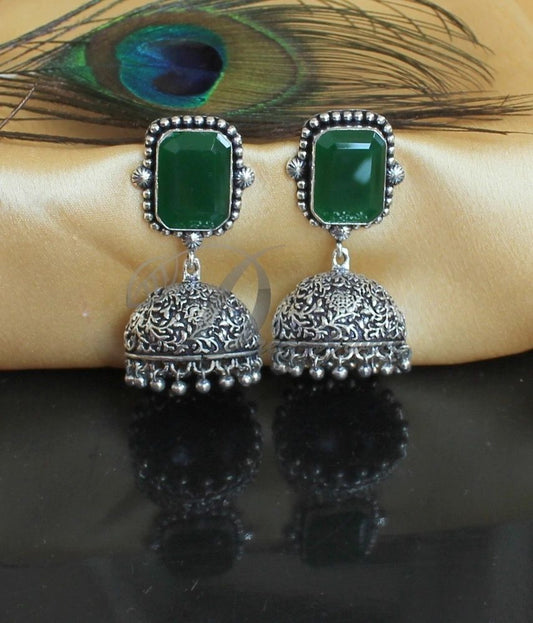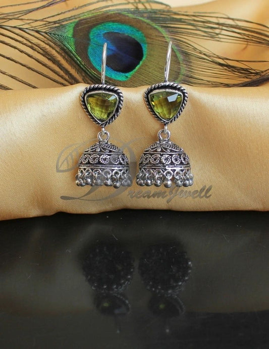 Silver tone Olive Green Hook Jhumkka DJ22734