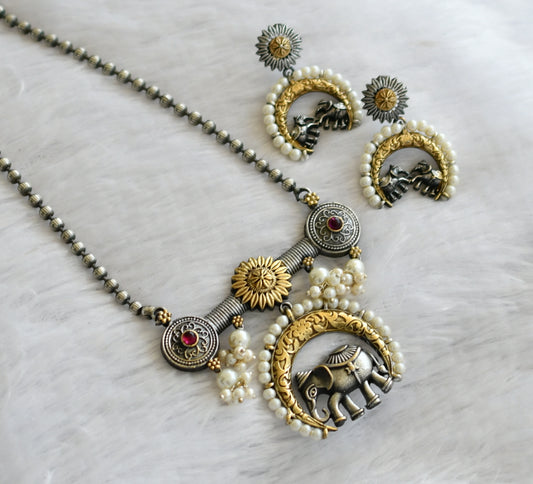 Two tone pearl pink stone elephant pendant set dj-46441