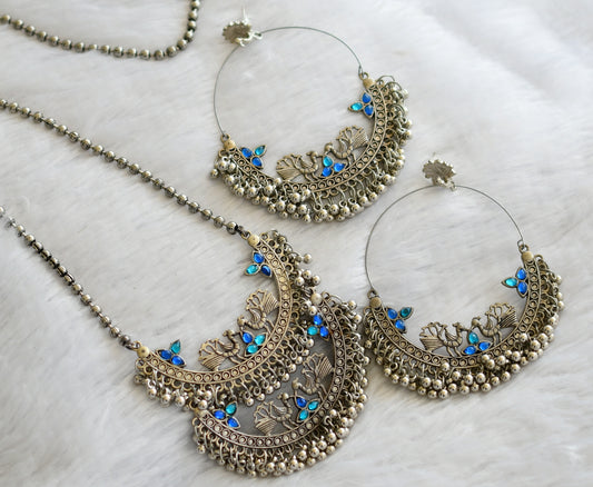 Silver tone blue stone peacock haar set dj-46444