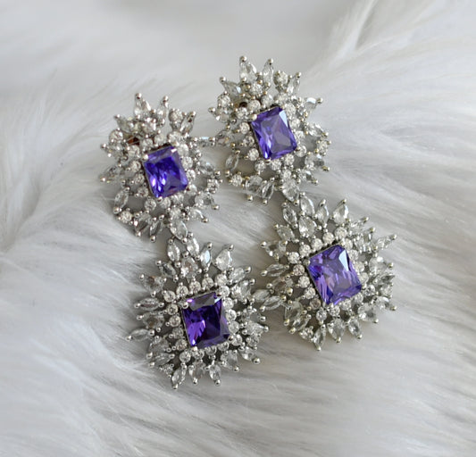 Silver tone purple-white square stone earrings dj-44840