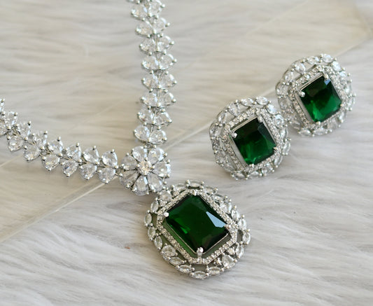 Silver tone bottle green-white square stone necklace set dj-44833