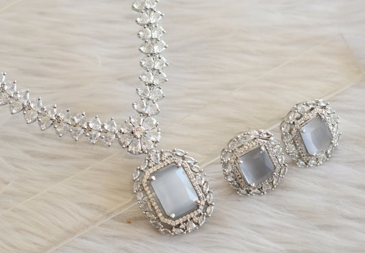 Silver tone grey-white square stone necklace set dj-44836