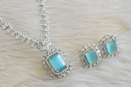 Silver tone sky blue-white square stone necklace set dj-44838