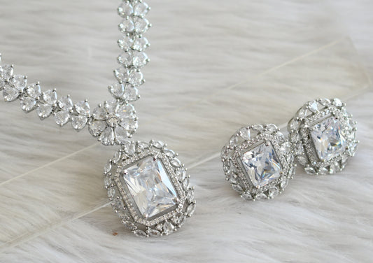 Silver tone cz white square stone necklace set dj-44837