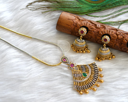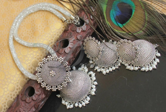 Oxidized Silver Jhumkka Pendant Necklace Set-dj04979