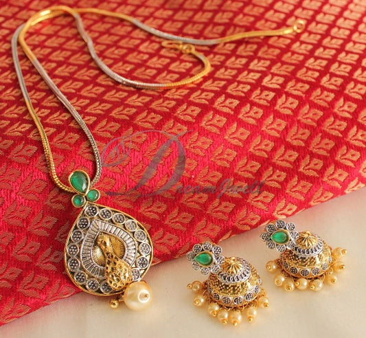 Beautiful Dual Tone Emerald Peacock Necklace Set-dj07450