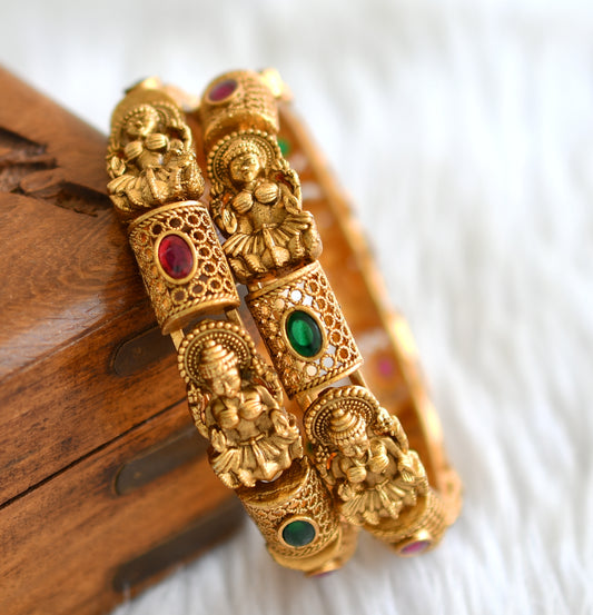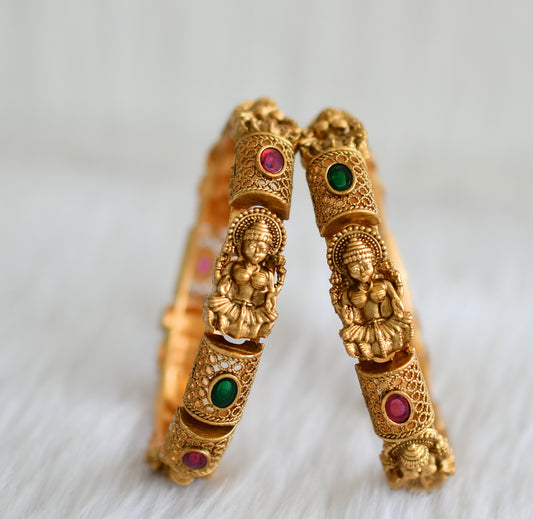 Gold tone pink-green-white kundan jadau bugadi needle earrings dj-52497
