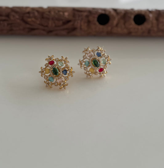 Matte finihs cz navarathna flower stud/earrings dj-51470