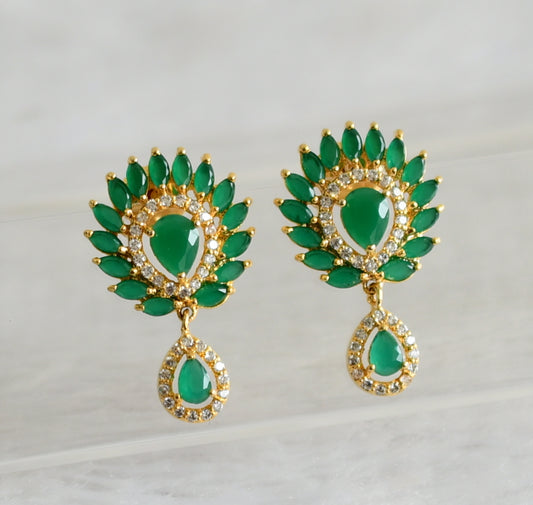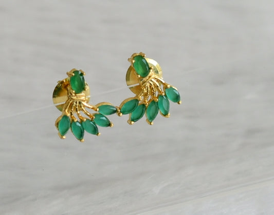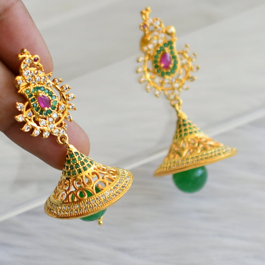 Gold tone ruby-green-white peacock-green beaded jhumkka dj-45621