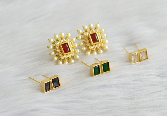 Gold tone cz ruby-green-blue-white pearl block stone changeable stud/earrings dj-43483
