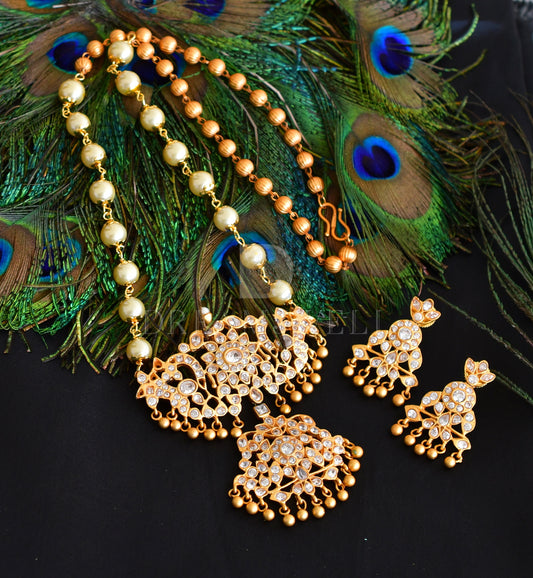Matte Finish Cz Peacock Pendant Pearl Necklace Set-dj08827