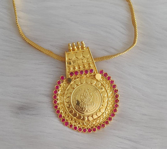 Gold tone pink stone kerala style lakshmi pendant with chain dj-42600