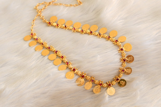 Gold tone Keral style Green Lakshmi coin pendant with chain dj-42525