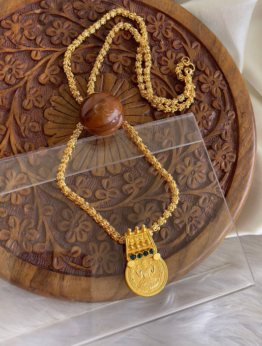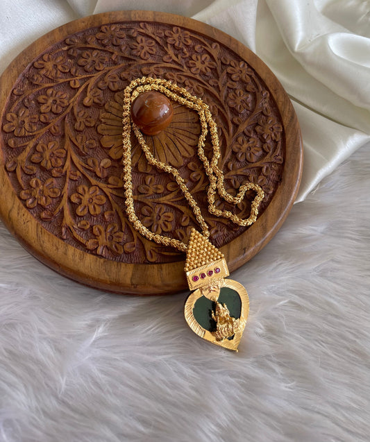 Gold tone Kerala style Green gopi shape Lakshmi pendant with chain dj-42523