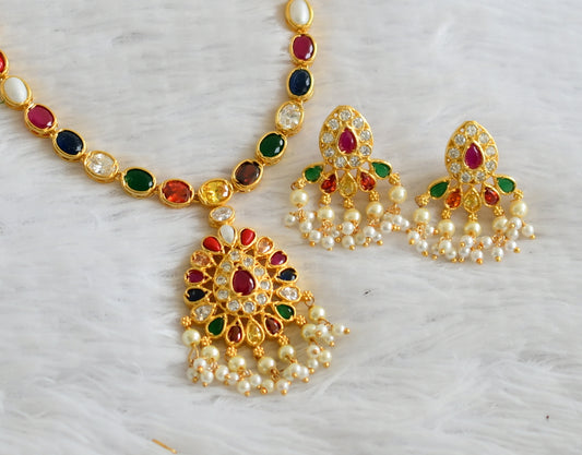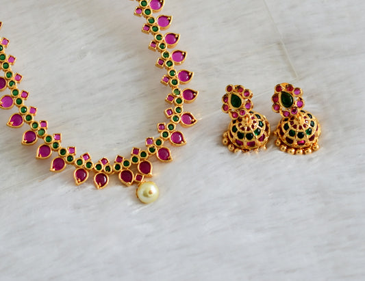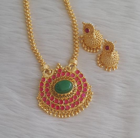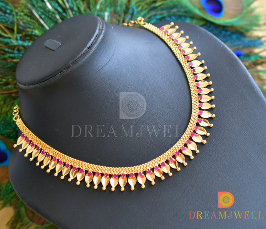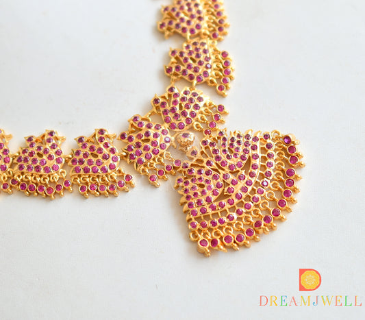 Gold tone ruby thali kootam kerala style necklace dj-30727