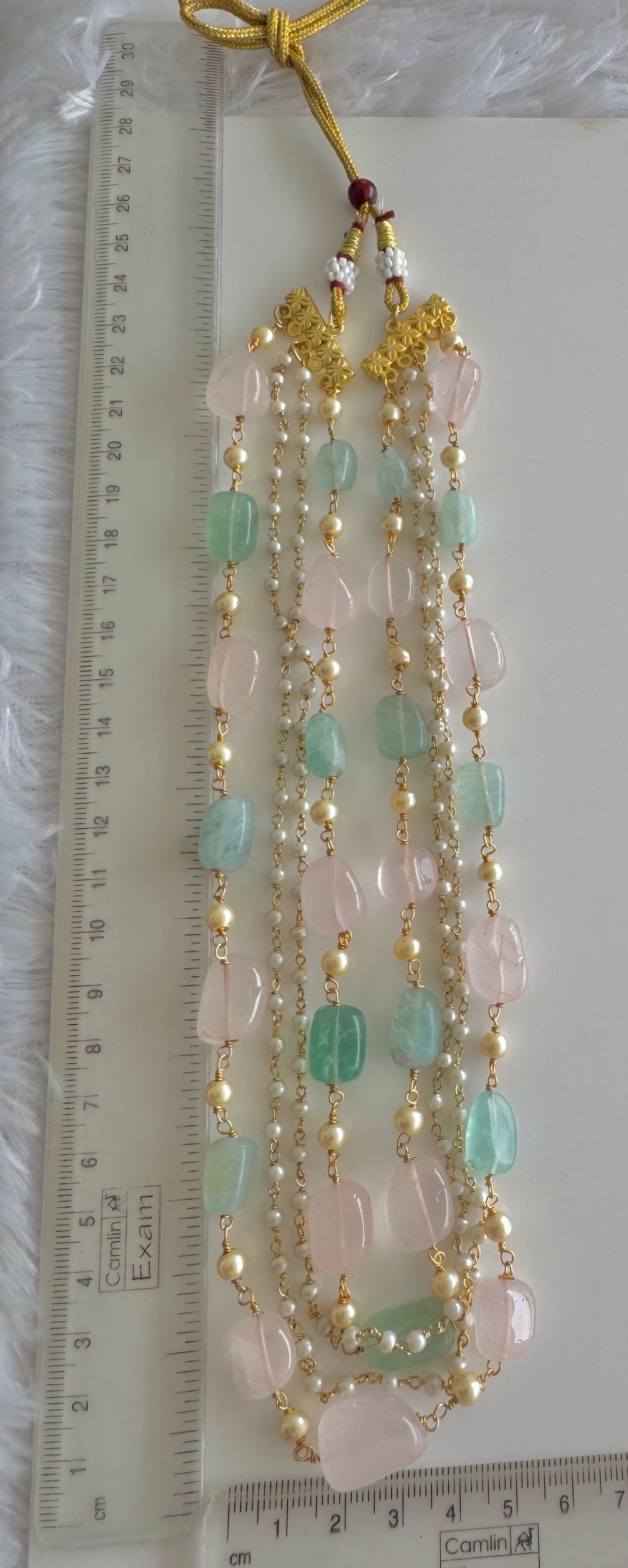 Antique gold tone baby pink Green Onyx Beaded Necklace Set Dj-51462