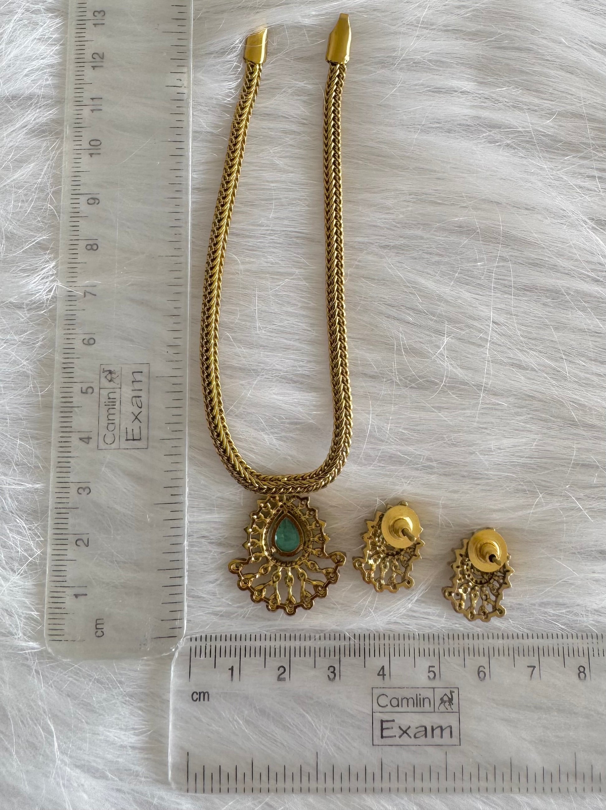Antique gold tone cz light blue thilak stone necklace set dj-51210