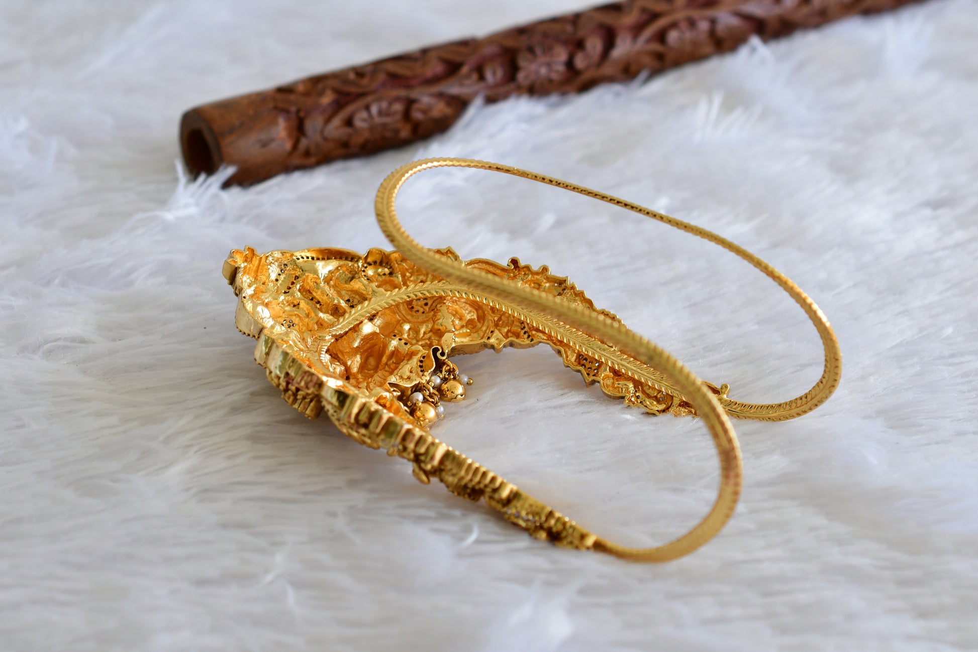 Antique gold tone cz pink-green jadau lakshmi peacock nakshi vanki/bajuband dj-51968
