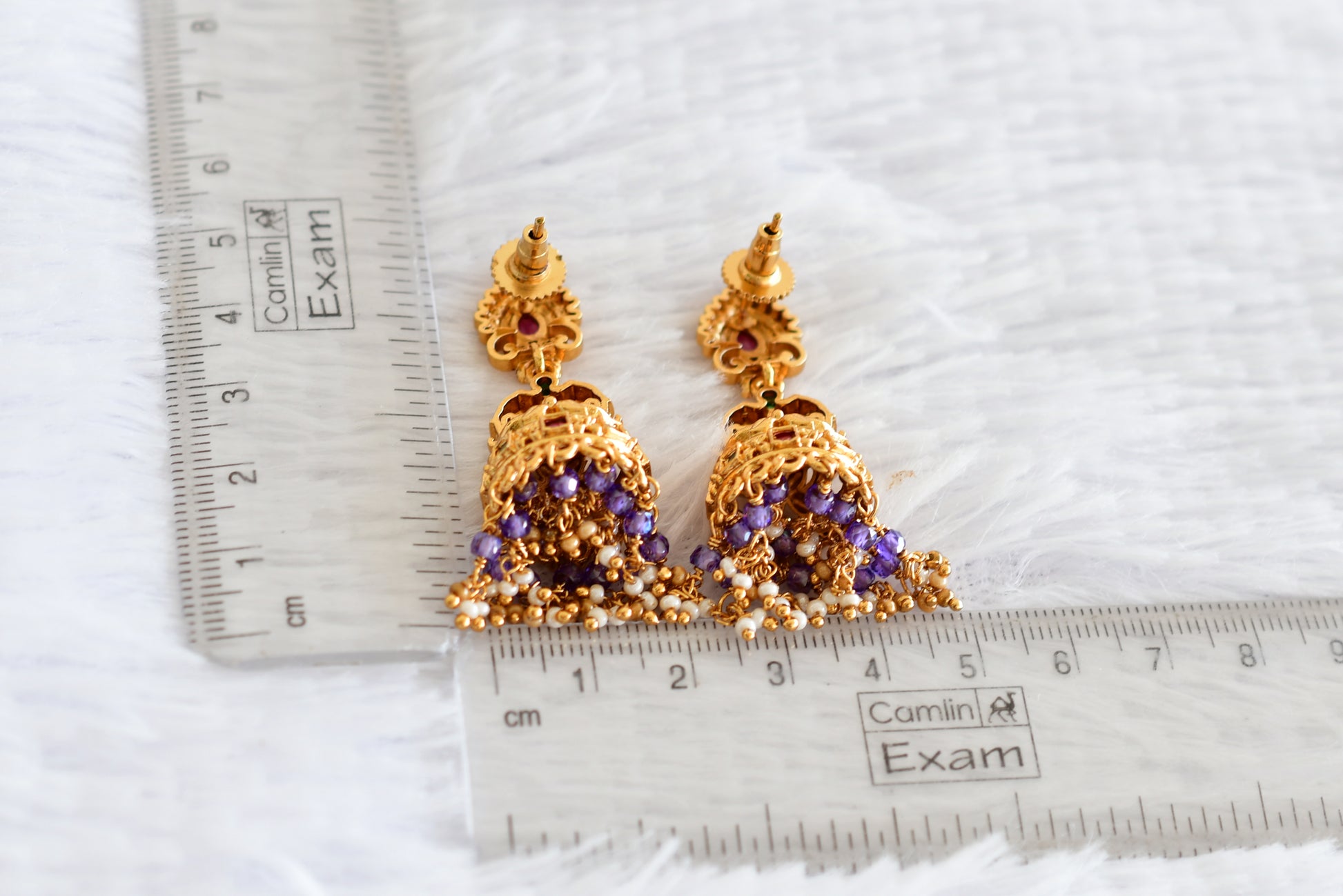 Antique gold tone ruby-green purple beaded elephant jhumkka dj-52161