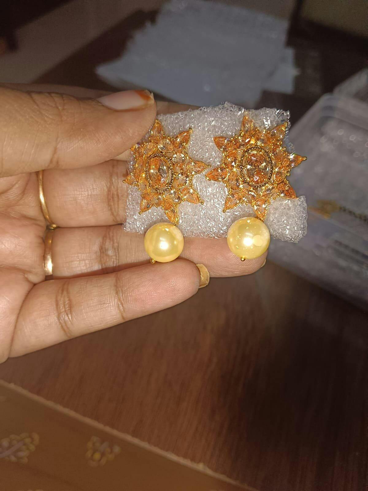 Gold tone Cz-gold stone Flower Earrings -dj13650