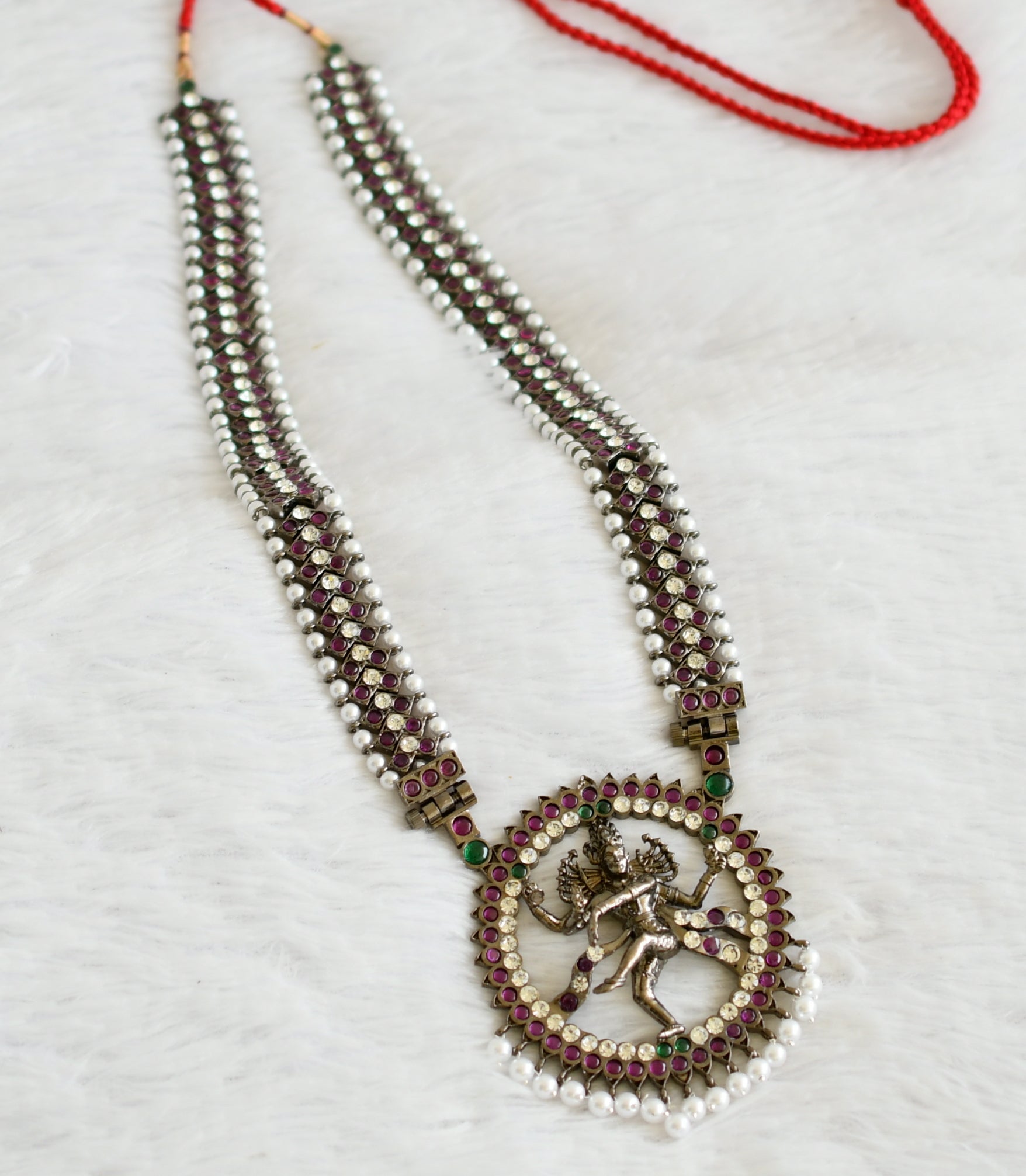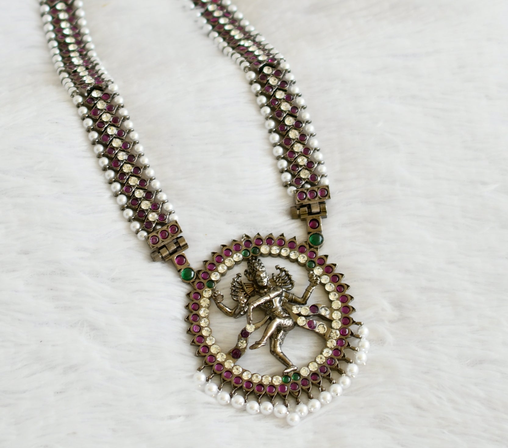 Black finish precious kemp-green-white pearl Shri Natarajar haar dj-50878