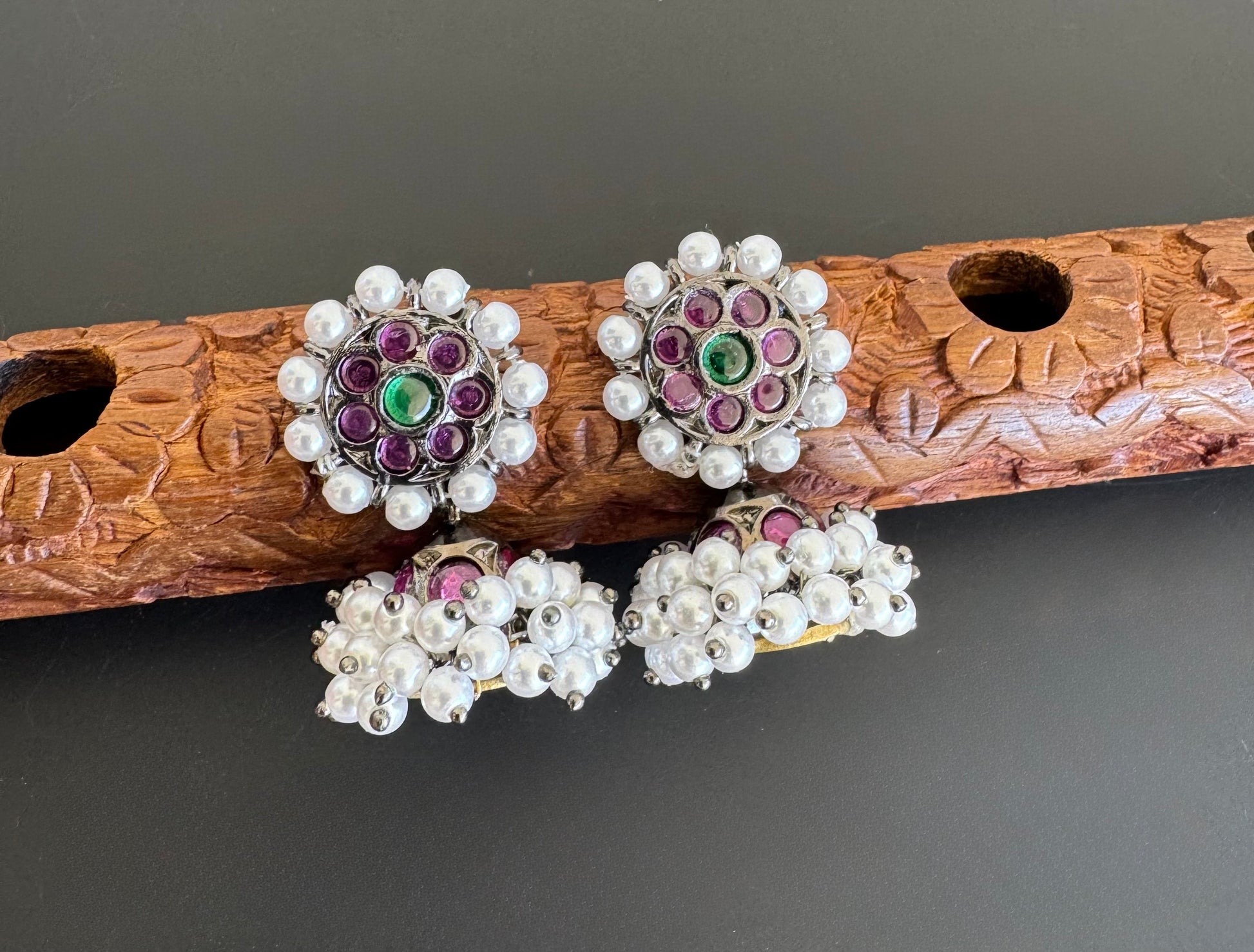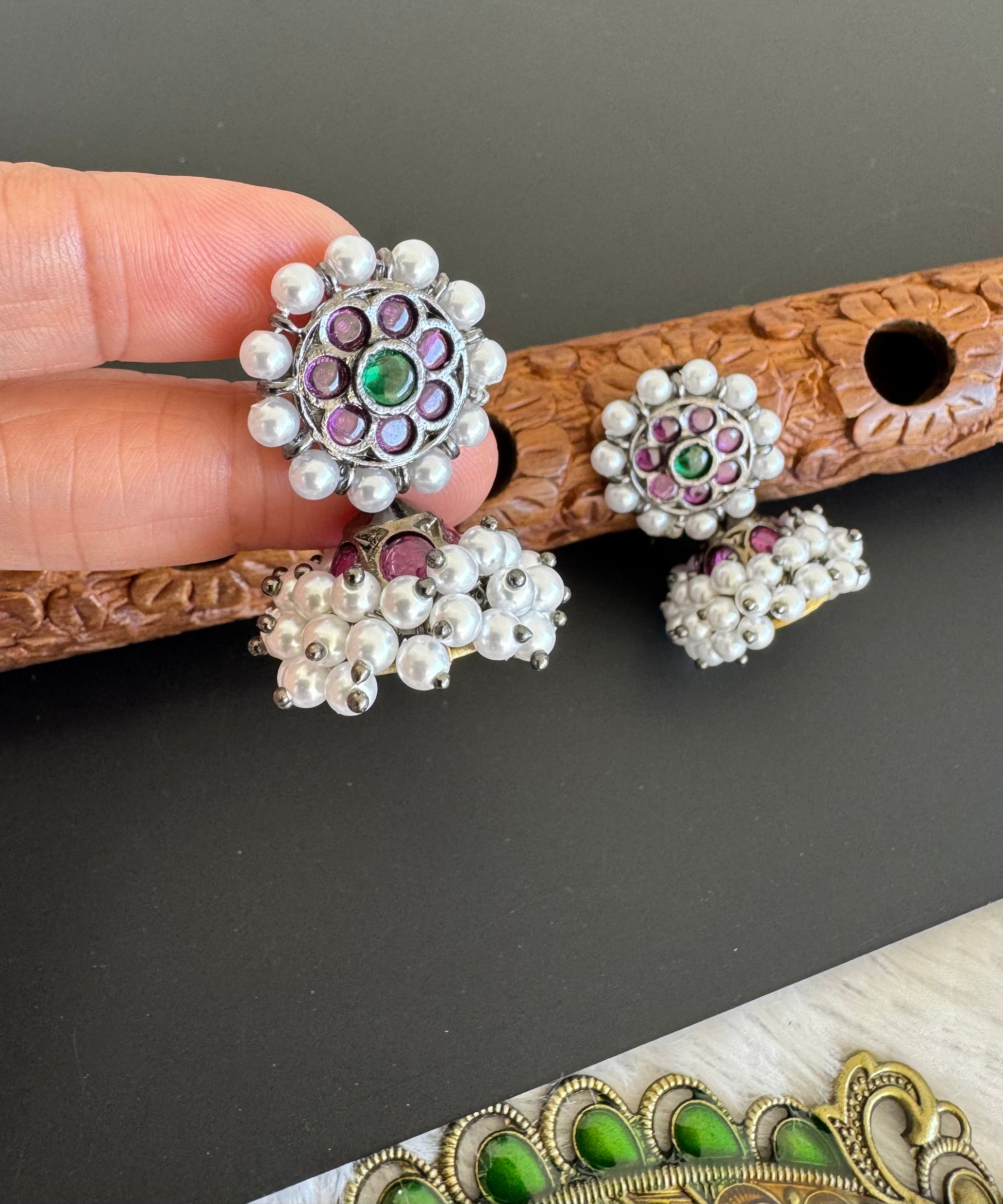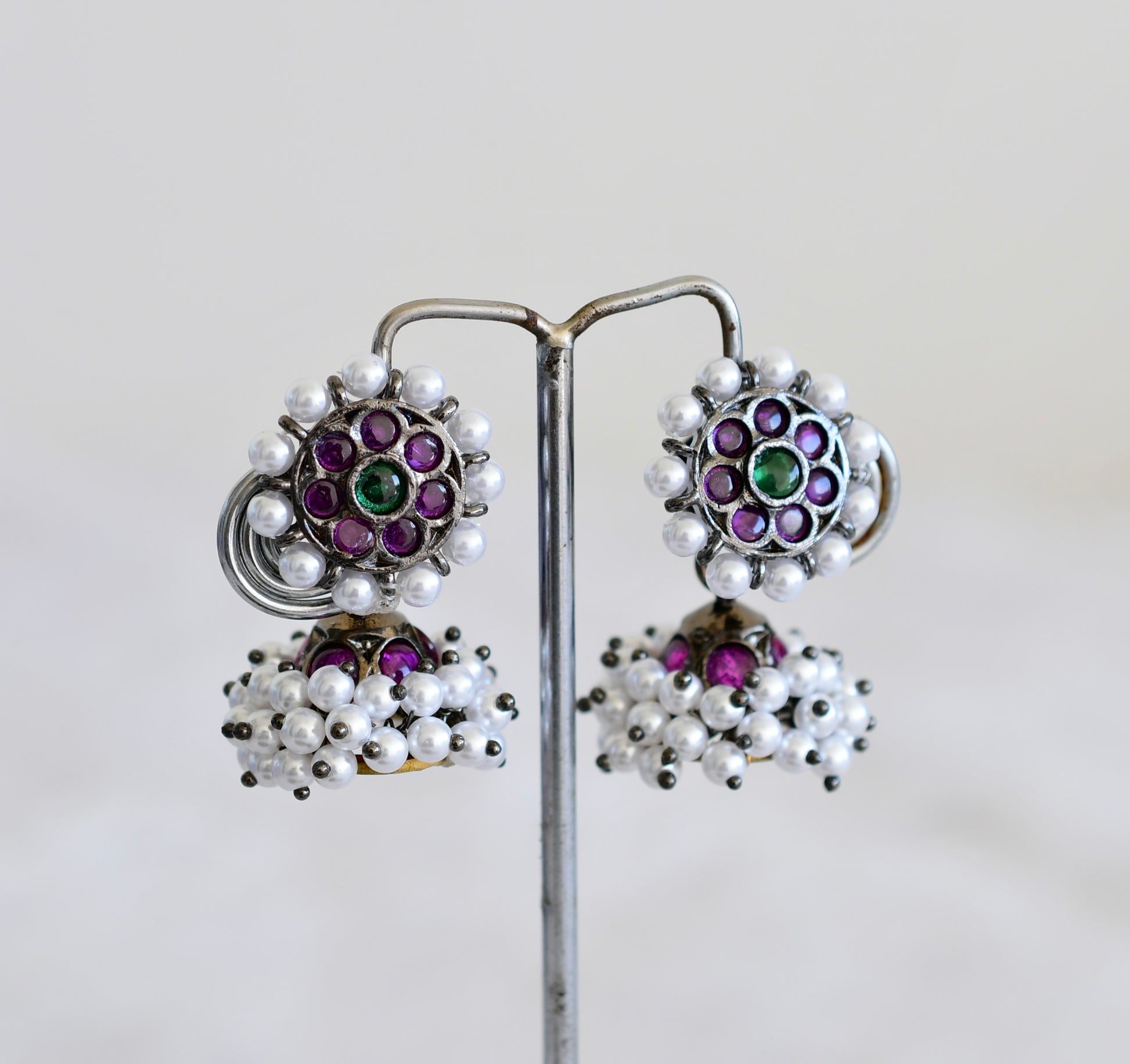 Black finish precious kemp-green pearl jhumkka dj-52521